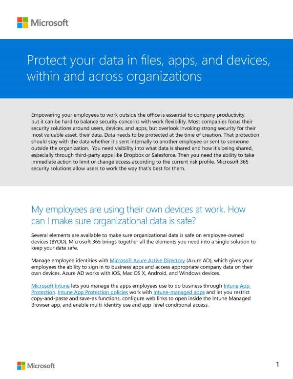 Protect your data in files, apps, and devices, within and across an organization