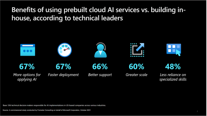 These are just a few of the practical ways organizations have found efficiency and utility in out-of-the-box AI services that didn’t demand an unreasonable investment of time, effort, or customization to deploy.